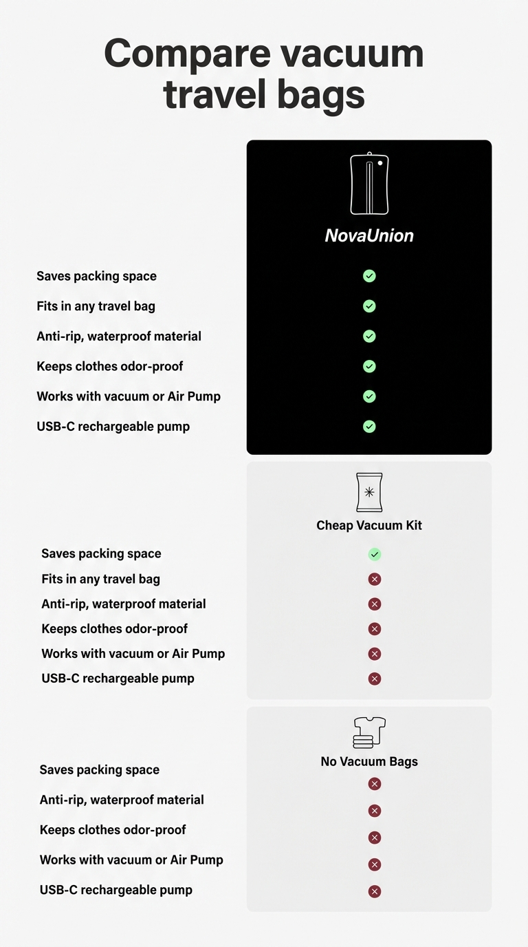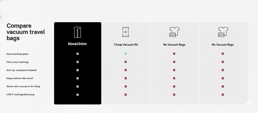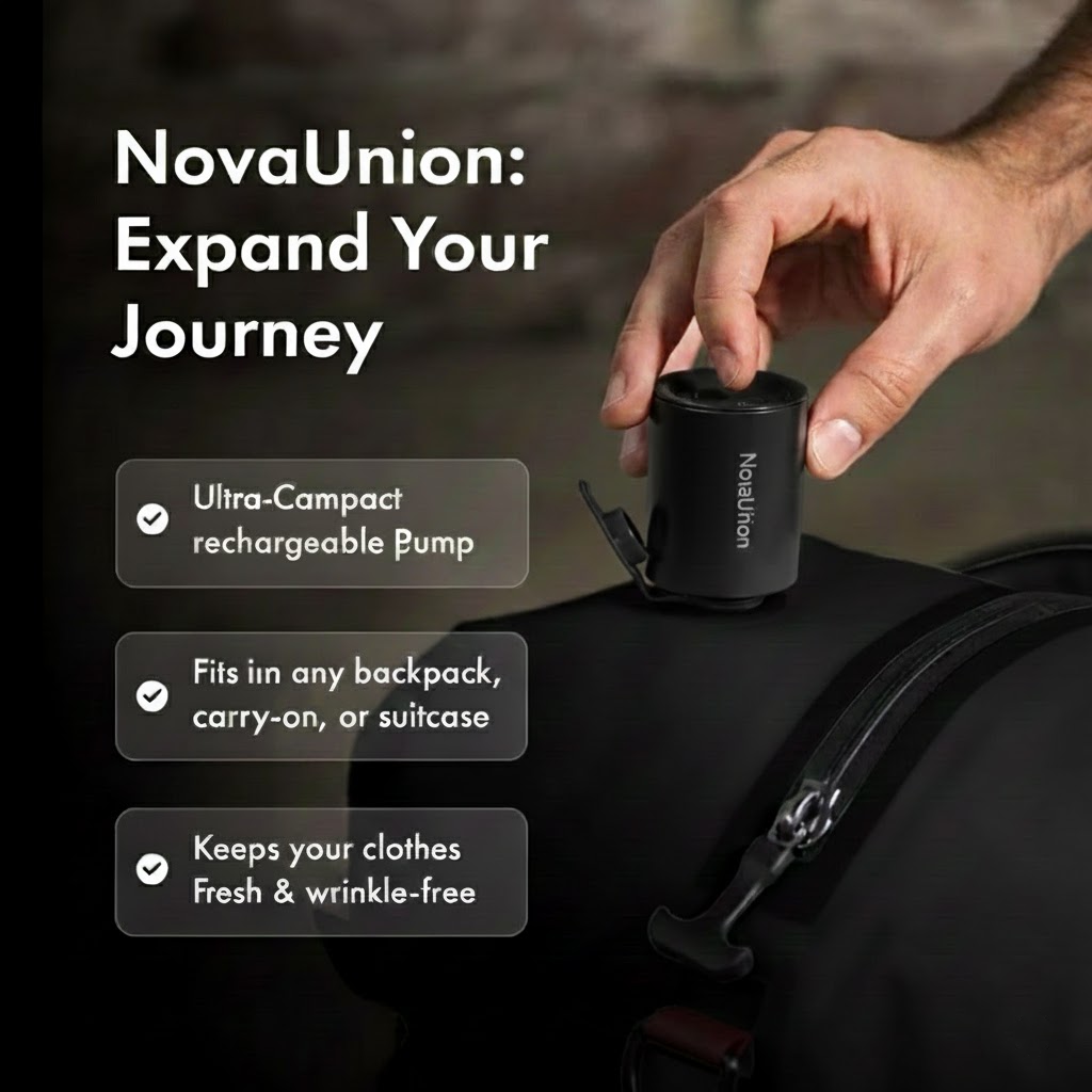 The NovaUnion Pump is the ultimate travel hack. It’s small enough to fit in your palm but powerful enough to triple your suitcase space.
