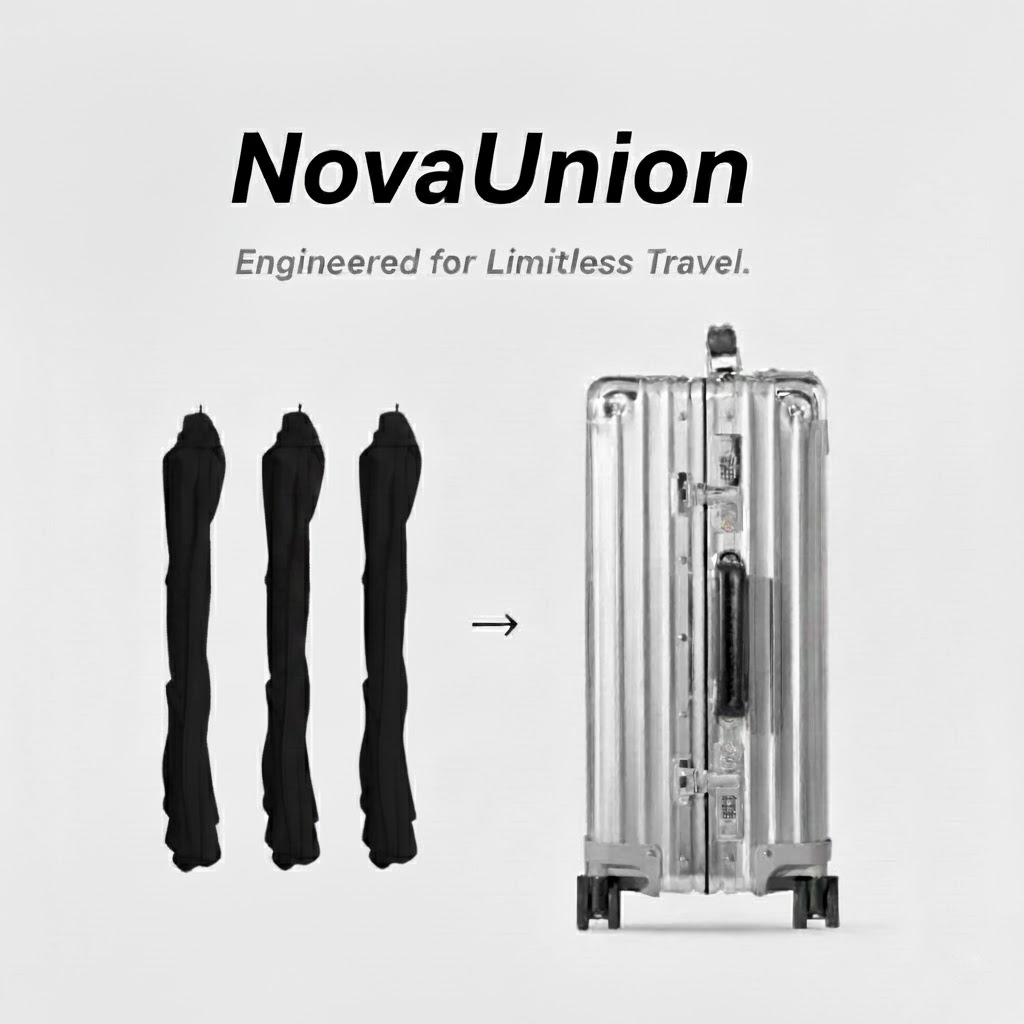 Meet the NovaUnion Compression System. Our vacuum bags shrink your bulk by up to 80%, allowing you to fit three full-sized suits or coats into a fraction of your suitcase.